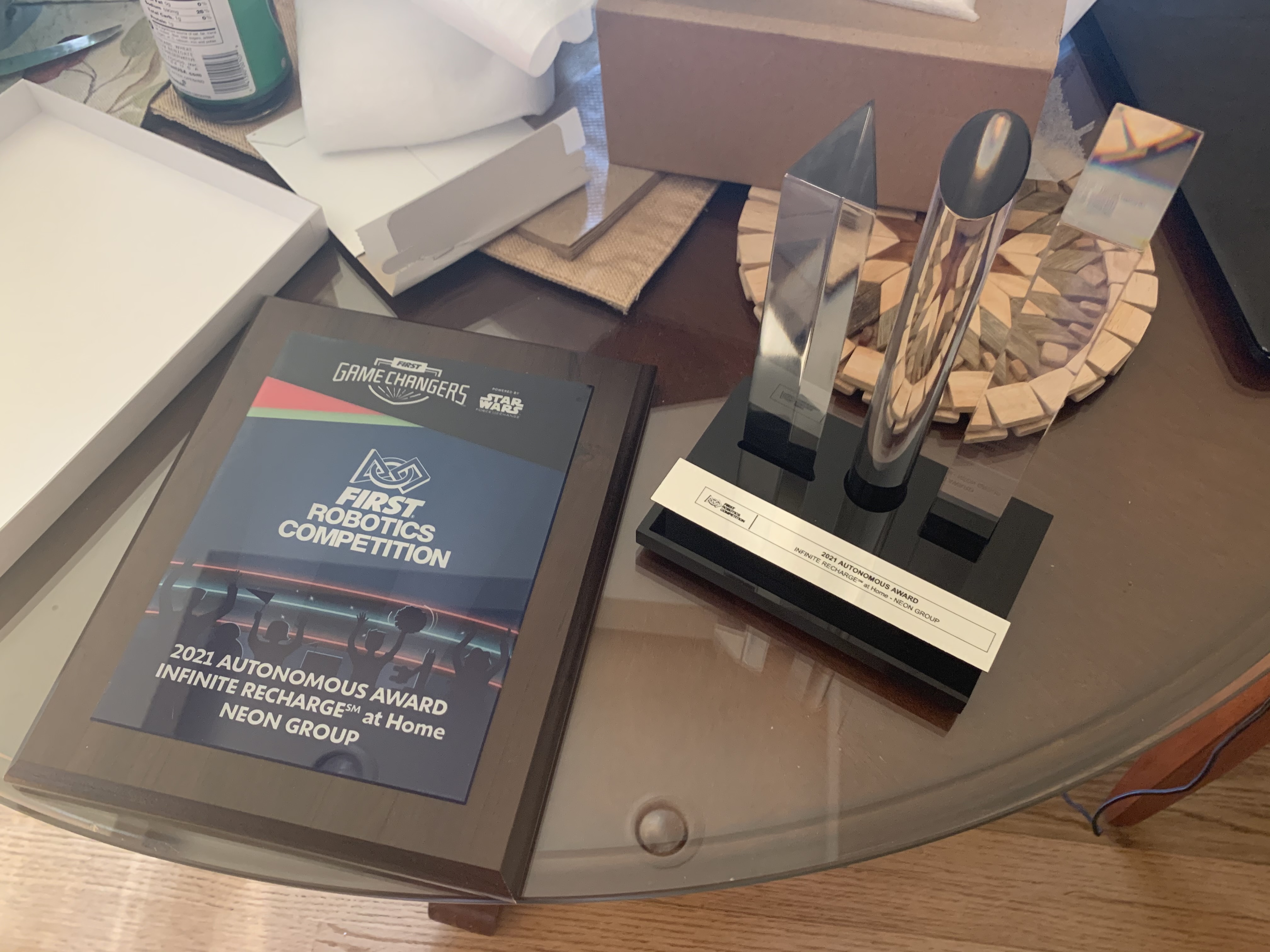 In 2021, our team won the Autonomous Award sponsored by Ford at our regional FRC tournament for the turret lock system, featuring a combination of computer vision and motion control.